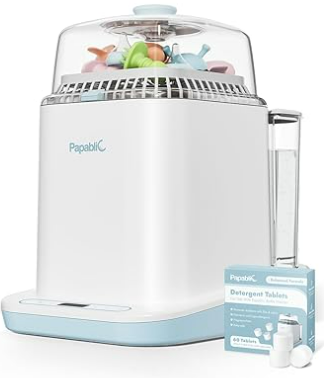 The downside? It’s tied with Baby Brezza as the most expensive option, and the moisture-detection drying can push total cycle times close to two hours on complex loads. If you’re primarily washing standard bottles without pump parts, the Grownsy or Papablic offer better value.
